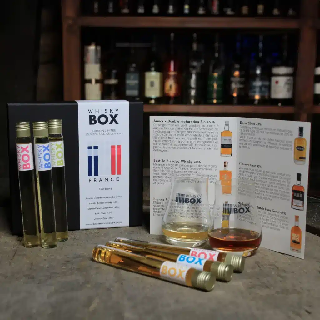 Découvrez l’excellence du savoir-faire français avec le Coffret WhiskyBox France. Chaque flacon renferme le fruit du travail de distilleries artisanales passionnées, qui façonnent des whiskys d’exception dans nos plus belles régions. Sélectionnés avec soin par nos experts, Florent et Isabella, offrez-vous une véritable expérience de dégustation, entre traditions régionales et innovations gustatives.