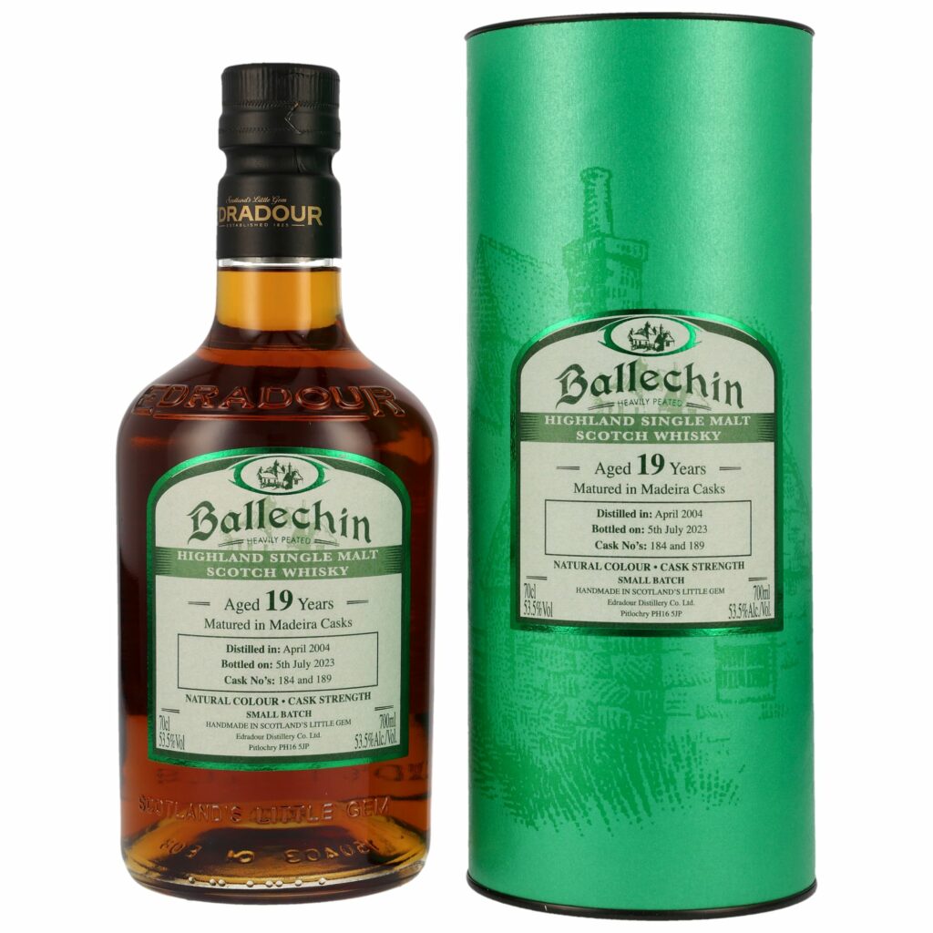 Le Ballechin 19 ans Madeira Cask est un embouteillage exclusif de la distillerie Edradour, originaire des Highlands écossaises. Distillé en avril 2004 et mis en bouteille en juillet 2023, ce single malt a vieilli pendant 19 ans dans des Puncheons de Madère, avec un degré de fût de 53,5%. Un total de 1 323 bouteilles ont été produites à partir des fûts numéros 184 et 189. Cette édition spéciale, faisant partie de la gamme SFTC (Straight from the Cask), offre une expérience authentique sans filtration à froid ni ajout de couleur. Ballechin est reconnu pour son caractère fumé et est la version tourbée appréciée de la distillerie Edradour, baptisée d’après une ancienne distillerie fermée.
